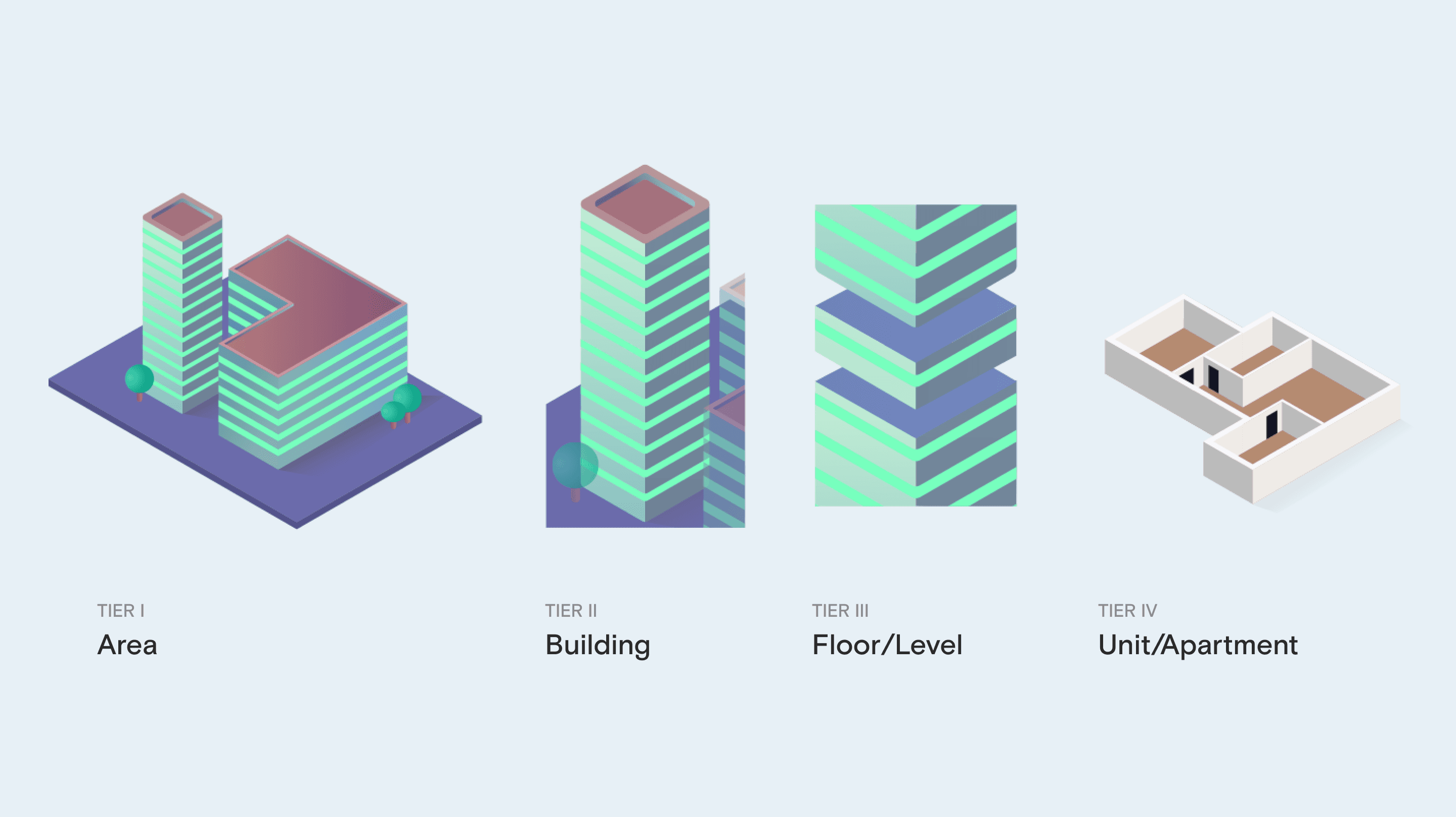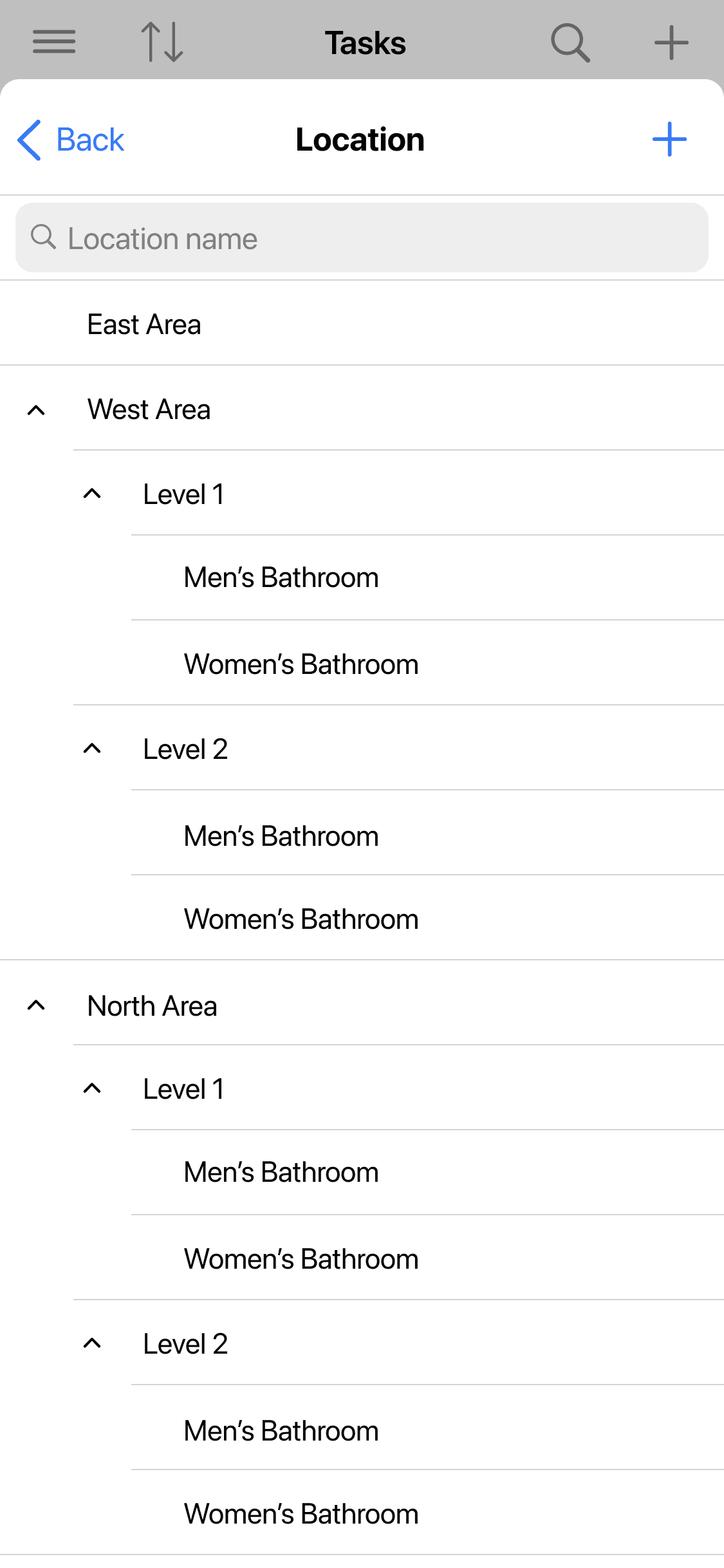 Location on a construction site includes a temporary address to the job site. In the above instance, location path to Unit would be Area › Building › Floor › Unit